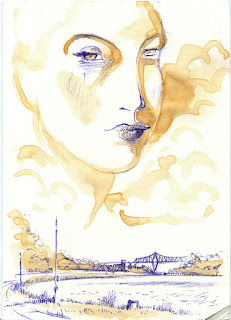 Da wanderten Ari und ich den Kanal entlang und die erste Kanalzeichnung (von mir) entstand. Später habe ich mir nicht mehr so viel Arbeit gemacht, ich bin nicht mehr gewandert und habe mich auf die Bank gesetzt.